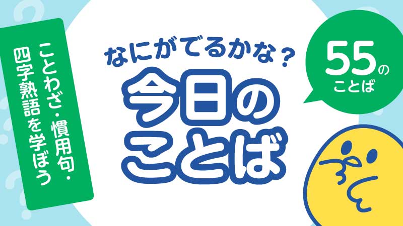 なにがでるかな?今日のことばをクリックすると、ことわざ・慣用句・四字熟語のカード55枚(2025年7月18日現在)の中から1枚ランダムで表示されます。カードをクリックすると、ことばの意味が表示されます。1日1枚おぼえるのにチャレンジしてみてもいいですね。